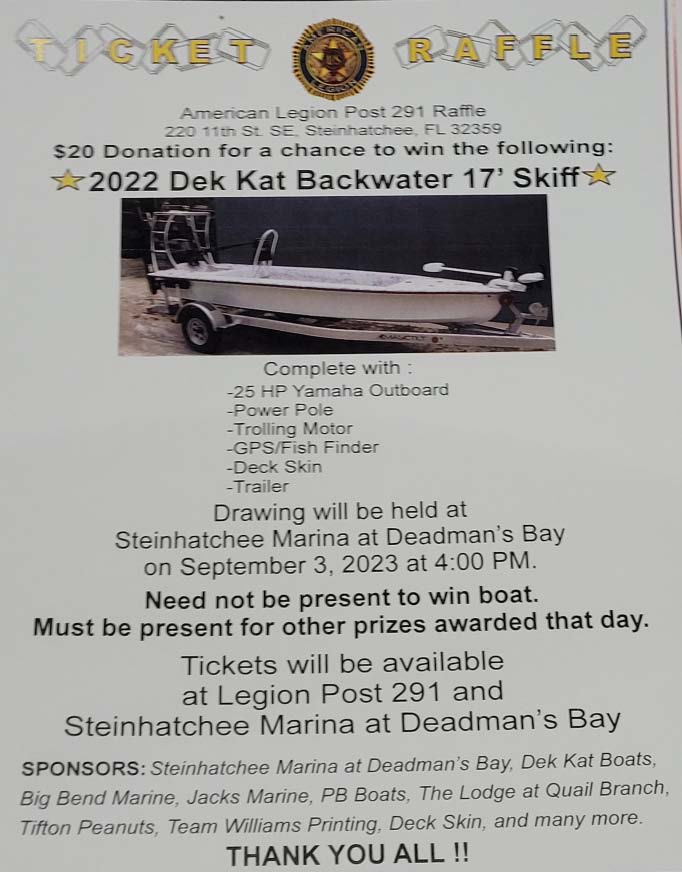Located in Steinhatchee Florida, P.O. Box 484, Steinhatchee, FL 32359, Post Location: 220 11th Street.